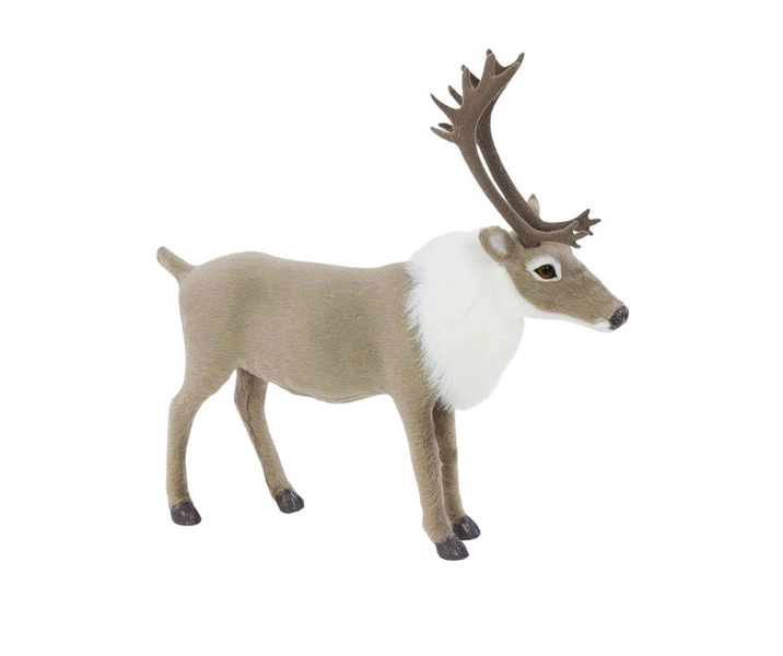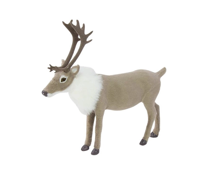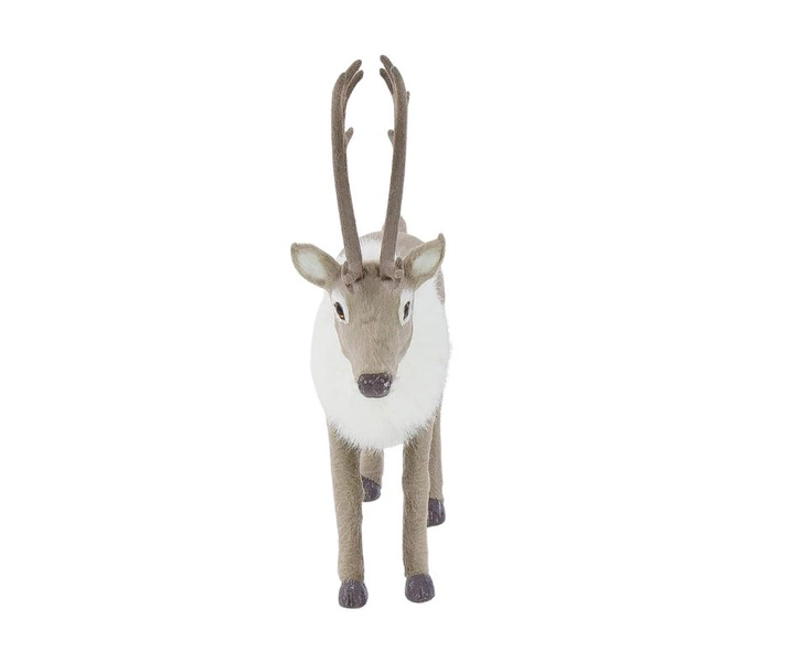 Elegancki szary renifer dekoracyjny pokryty miękkim, białym futerkiem Subtelny i stylowy dodatek do świątecznych aranżacji - pięknie ozdobi półkę, stół, stroik czy przestrzeń przy choince. Dzięki neutralnej kolorystyce wpasuje się zarówno w klasyczne, jak i nowoczesne dekoracje bożonarodzeniowe, wprowadzając do wnętrza przytulny, zimowy nastrój.