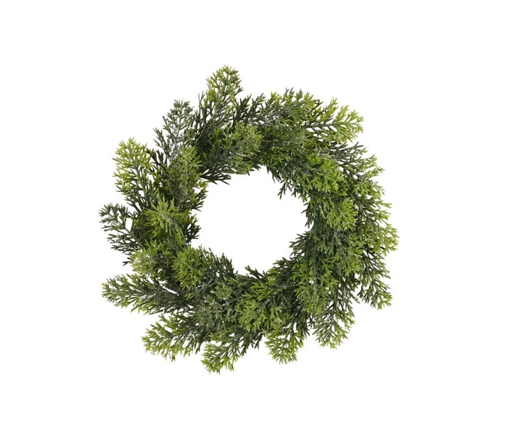 Dekoracyjny wianek świąteczny o średnicy 20 cm, wykonany z gałązek w odcieniu ciemnej zieleni z delikatnie jaśniejszymi końcówkami. Pokryty subtelnym brokatem, który pięknie mieni się w świetle. Idealny do powieszenia na drzwiach, ścianie czy jako baza do tworzenia własnych kompozycji z dodatkiem ozdób, kokard i światełek. Wprowadzi do wnętrza przytulny, zimowy nastrój.