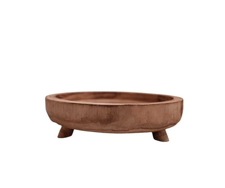 Stylowa, okrągła podstawka wykonana z naturalnego drewna. Ma średnicę 30 cm, delikatnie wklęsłą powierzchnię oraz stabilne nóżki, które dodają jej uroku i funkcjonalności. To elegancki element dekoracyjny, który pięknie wyeksponuje świece, stroiki, kwiaty, a także desery czy owoce.