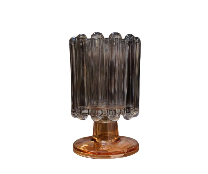 - Świecznik szklany dymiony na miedzianej nóżce 15 cm