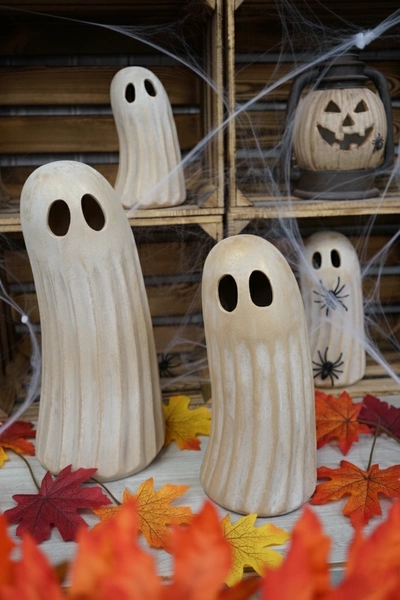 Duszek ceramiczny kremowy dekoracja halloween 32,5 cm