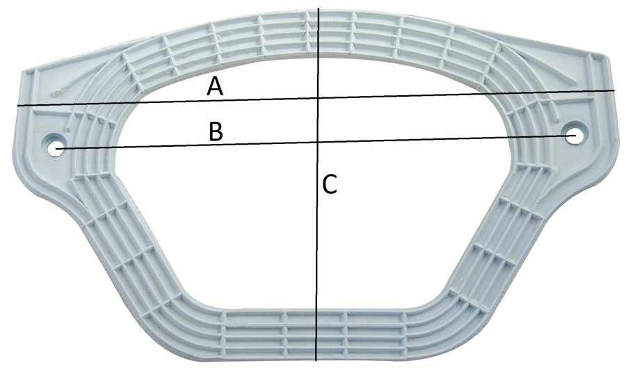 - Wymiary: A – 25,5 cm, B – 22,5 cm, C – 15 cm