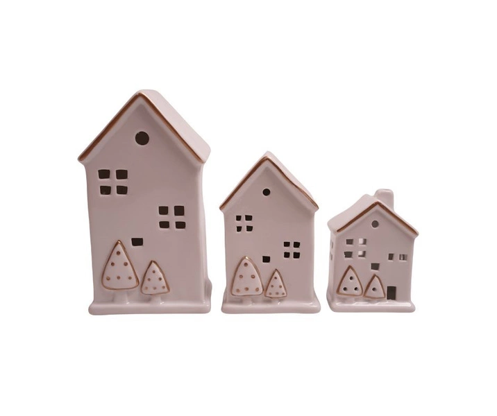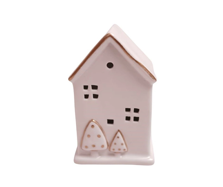 Domek LED biały ze złotymi choinkami to pełna uroku ozdoba świąteczna, która zachwyca subtelnym blaskiem i eleganckim designem. Delikatna ceramika w odcieniu śnieżnej bieli, ozdobiona lśniącymi złotymi choinkami, wprowadza do wnętrza atmosferę przytulności i świątecznej radości. Ta dekoracja pięknie prezentuje się zarówno w klasycznych, jak i nowoczesnych aranżacjach, stając się sercem zimowych stylizacji oraz idealnym pomysłem na prezent pełen ciepłych emocji.