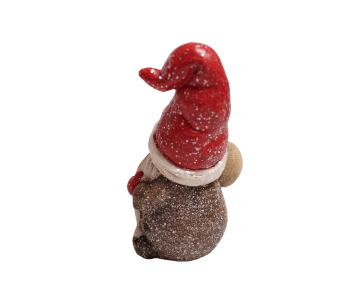 - Skrzat ceramiczny brązowy, z workiem, czerwona czapa LED 21 cm