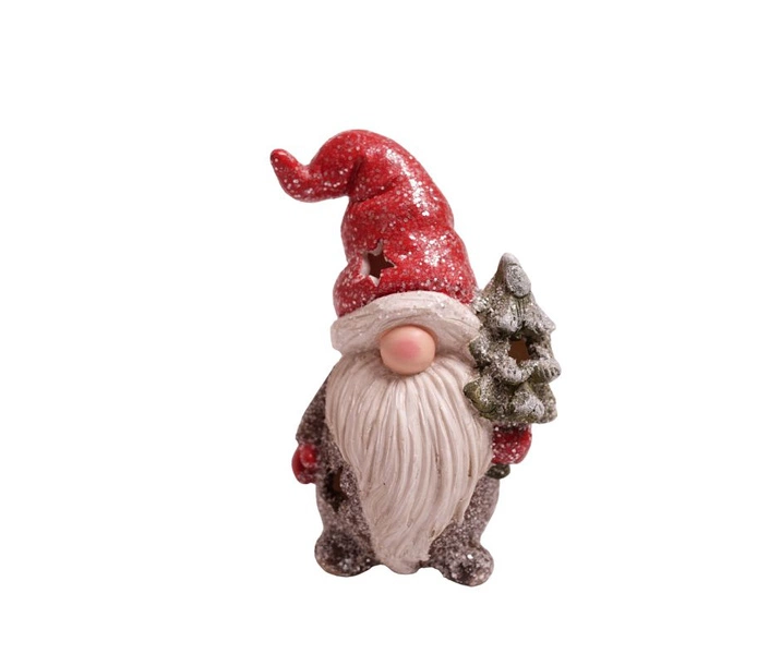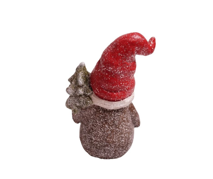 Uroczy świąteczny skrzat w brązowym stroju z czerwoną czapką i choinką w ręku to idealna dekoracja na święta. Dzięki wbudowanemu oświetleniu LED subtelnie rozświetli wnętrze, tworząc ciepły i magiczny klimat. Pięknie zaprezentuje się na komodzie, parapecie, stole czy w stroiku.