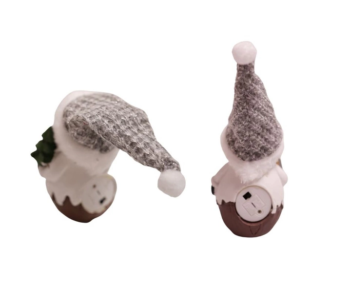 - Bałwan/Mikołaj ceramiczny LED z prezentem/choinką, szara czapa 18cm