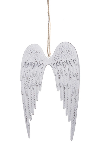 Elegancka zawieszka w kształcie anielskich skrzydeł wykonana z metalu w kolorze białym. Subtelna, a zarazem efektowna dekoracja, która pięknie prezentuje się na choince, wieńcu, w oknie czy jako element stroika. Delikatny połysk i staranne wykończenie sprawiają, że idealnie wpisuje się w klimat Świąt Bożego Narodzenia, wprowadzając do wnętrza spokój i harmonię.