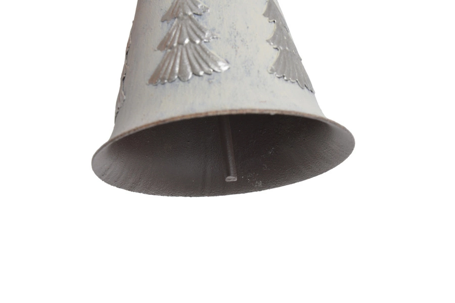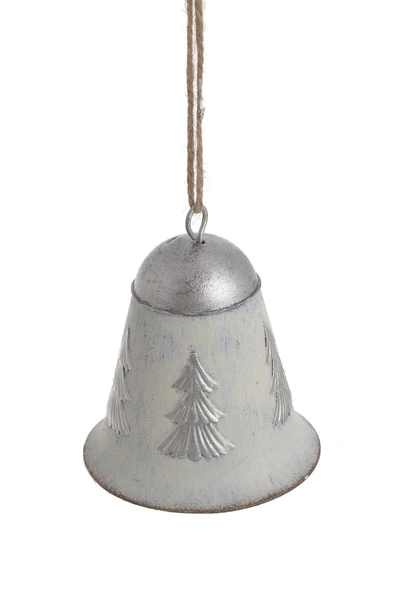 Zawieszka Dzwon metal biały srebrne choinki 8 cm