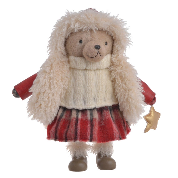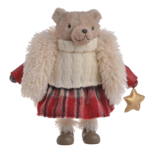 Stojący miś pluszowy ONA w czerwonej sukience to uroczy akcent świąteczny do każdego wnętrza. Miękki w dotyku, starannie wykonany, wprowadza magiczny klimat Bożego Narodzenia. Idealny do postawienia przy choince, na kominku, w pokoju dziecka lub na wystawie sklepowej.