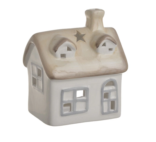 - Domek ceramiczny na T-light biały, krem dach z gwiazdką 13cm