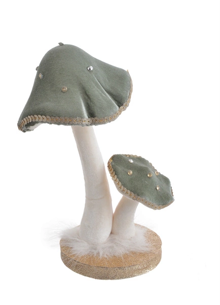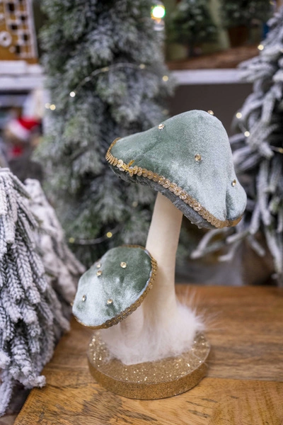 Grzyby 2sztuki aksamit miętowe, złote ranty 21cm