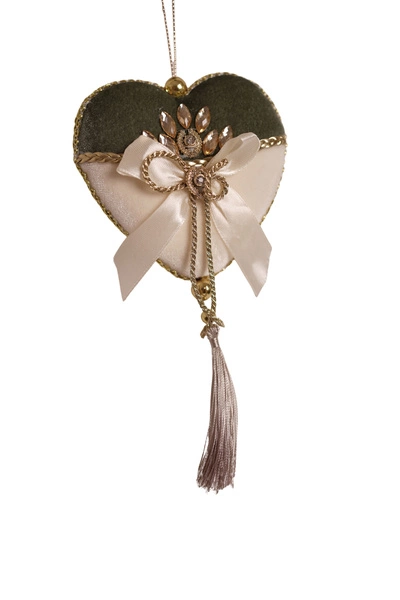 Zawieszka Serce aksamit biało-zielone 21cm