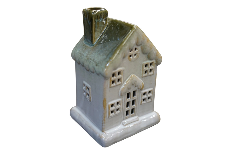 - Domek Holenderski LED beżowy, zielony dach i komin