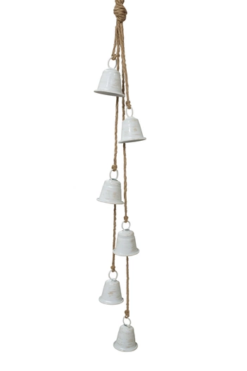- Dzwonki metalowe 6 sztuk białe na sznurze 6×8 cm