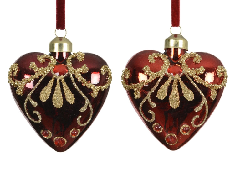 - Bombki szklane serca czerwone ze złotym brokatem 8 cm (2 sztuki)
