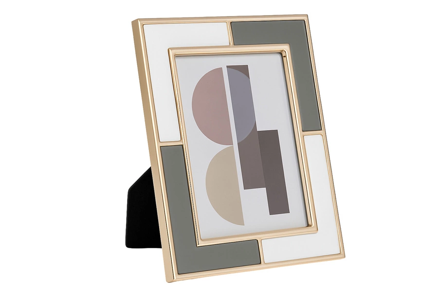 Ramka na zdjęcie 11,5x16,5 /16,5x21,5 w subtelnych odcieniach bieli i szarości, z delikatnymi złotymi rantami, zachwyca wyważoną elegancją. Jej ponadczasowy styl pięknie podkreśli zarówno rodzinne fotografie, jak i ulubione ilustracje. Ta dekoracja wprowadza do wnętrza przytulny nastrój i sprawia, że każda przestrzeń staje się bardziej osobista. Doskonała jako prezent, podkreśli wyjątkowe chwile i doda uroku domowej galerii.
