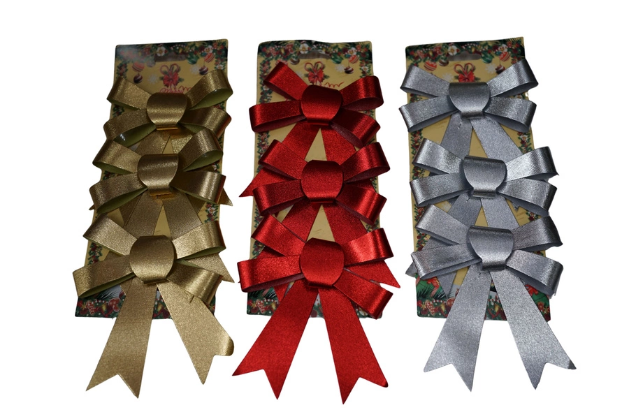 - Kokardy dekoracyjne na choinkę czerwone, złote lub srebrne 9×12 cm 3 sztuki,w blister