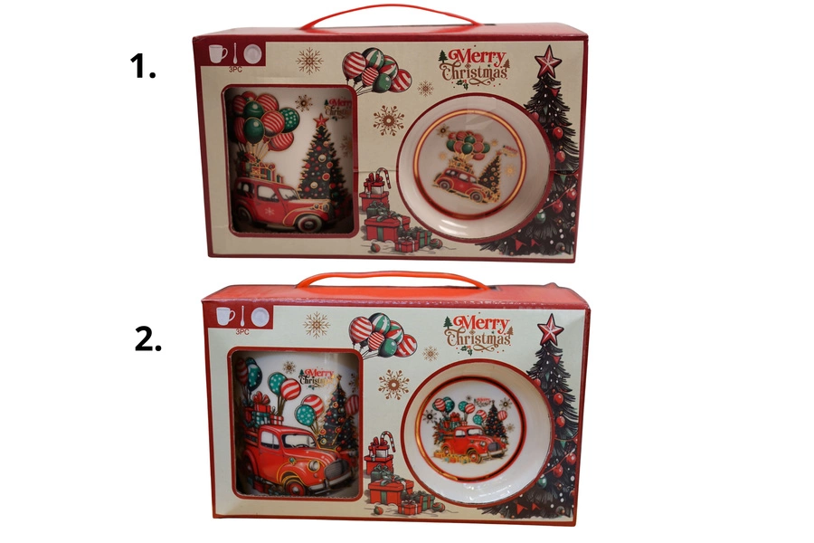 Kubek Auto przy choince, balony z łyżeczką i niekapkiem w pudełku