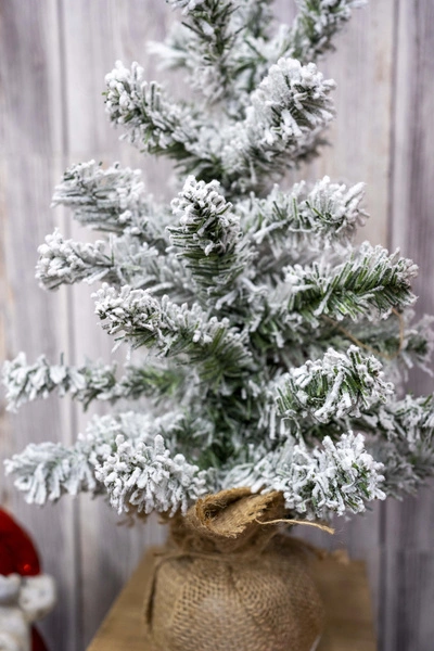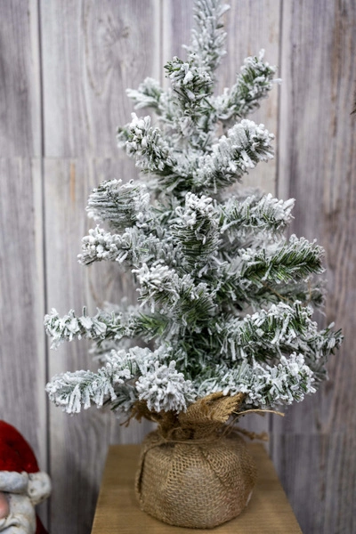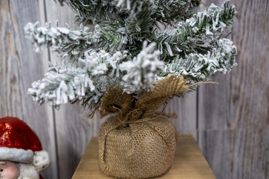 - Choinka flokowana 45 cm w jutowym obszyciu