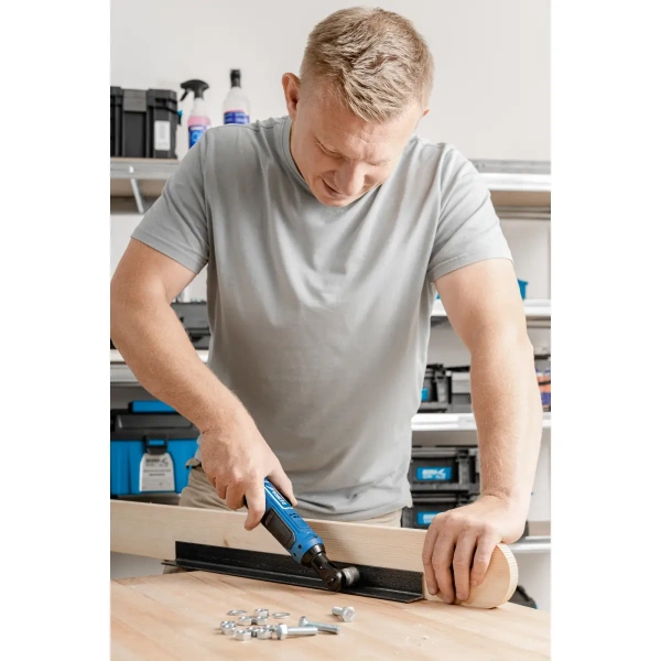 Idealny do prac montażowych i serwisowych w motoryzacji, instalacjach i mechanice precyzyjnej, a także do mebli, regałów i napraw domowych. Sprawdza się pod deską rozdzielczą, w szafkach, rozdzielnicach oraz przy maszynach i konstrukcjach, gdzie liczy się mały rozmiar narzędzia i szybkie tempo pracy.