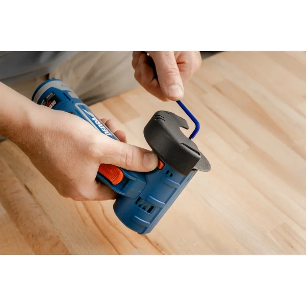 - Przed wymianą tarczy wyjmij akumulator i użyj dołączonego klucza imbusowego.