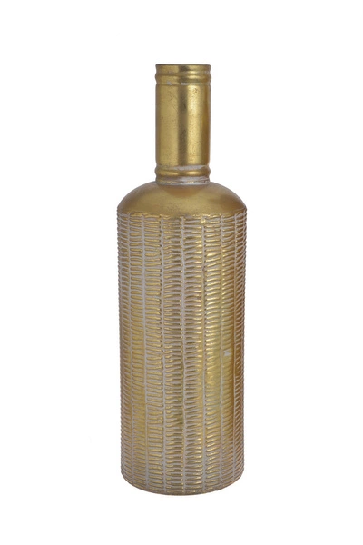 - Złoty wazon metalowy z efektem przetarcia i zwężaną szyjką 58 cm
