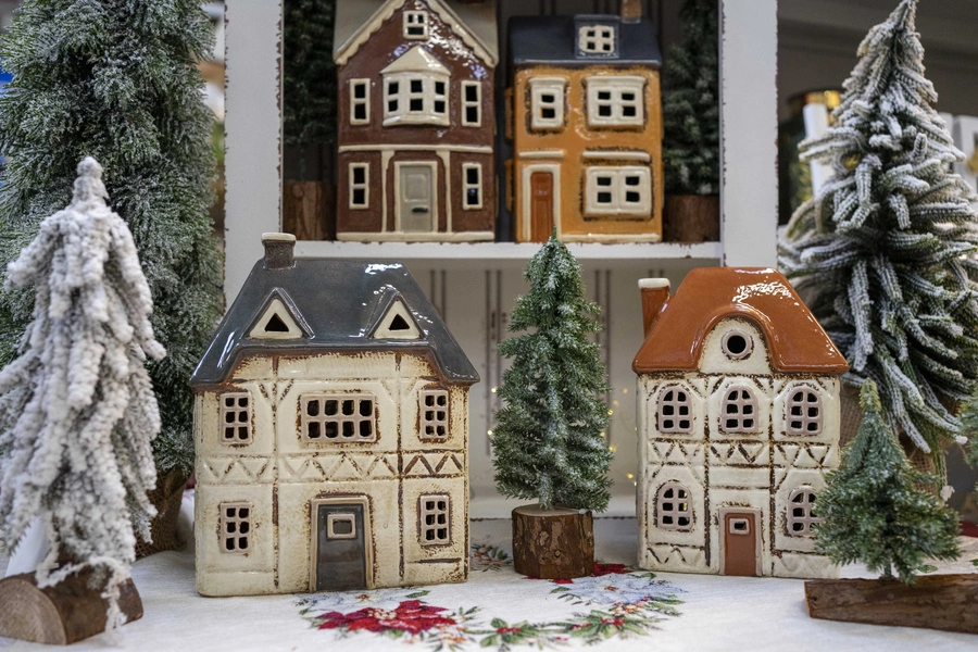 Ustaw Domek Holenderski T‑light na konsoli w przedpokoju, aby powitał domowników ciepłym blaskiem. Stwórz mini miasteczko z kilku domków na kominku lub parapecie. W jadalni niech stanie pośrodku stołu jako nastrojowy świecznik podczas kolacji. W okresie świątecznym dodaj gałązki i lampki, a na wiosnę połącz go z pastelowymi dodatkami. Na zadaszonym tarasie wprowadzi subtelne światło podczas wieczornych rozmów.