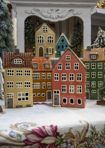 Wyobraź sobie kameralną uliczkę w Amsterdamie zamkniętą w formie urokliwego domku. Beżowe ściany i ciepły, brązowy dach sprawiają, że ten świecznik typu T-light od razu buduje przytulny nastrój. Dwupiętrowa bryła, subtelne detale okien i miękki blask tealightu tworzą wrażenie małej, świetlistej kamienicy – idealnej dekoracji do salonu, sypialni czy na świąteczny stół. To ozdoba, która dodaje elegancji na co dzień i magii podczas wyjątkowych chwil, także jako pomysł na prezent.