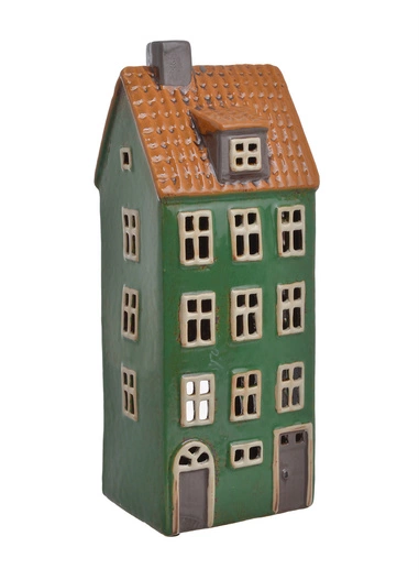 Domek Holenderski T-light ciemno zielony z brązowym dachem 3piętra