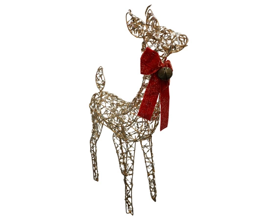 - Renifer złoty LED z drutu czerwona kokarda na baterie 63,5 cm