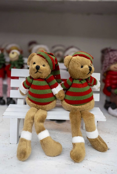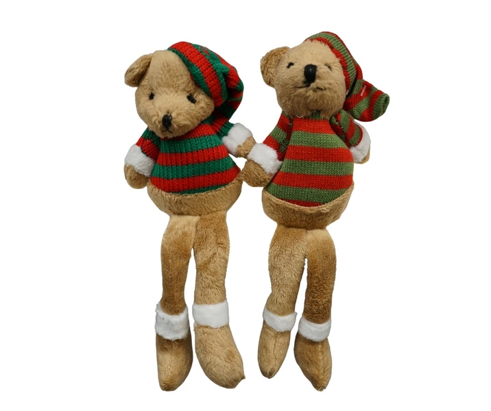- Pluszowa ozdoba świąteczna w formie misia ze zwisającymi nogami.