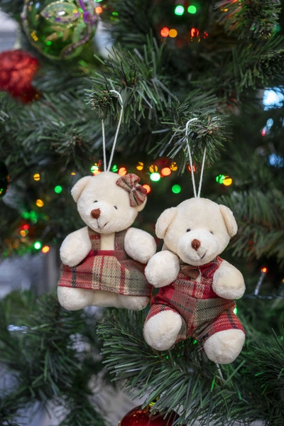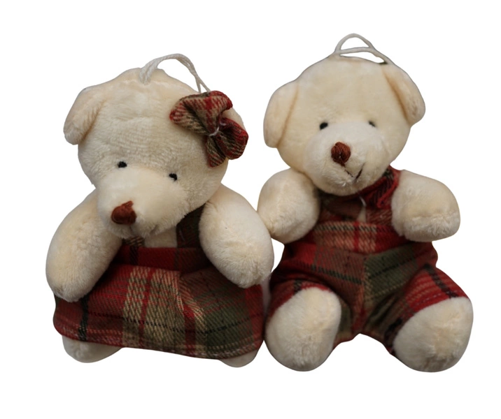 - Zawieszka misie pluszowe białe, czerwone ubranko w kratkę 2 sztuki