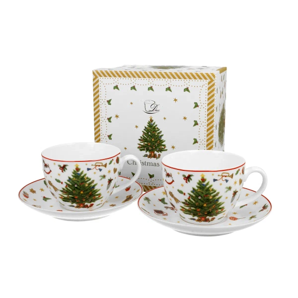 - Zestaw: 2 filiżanki i 2 spodki w dopasowanym stylu świątecznym.