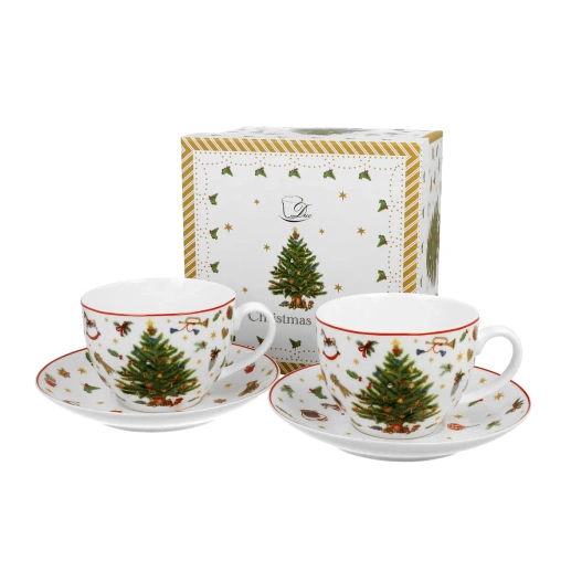 - Filiżanki 2sztuki ze spodkami Choinka w pudełku 220ml