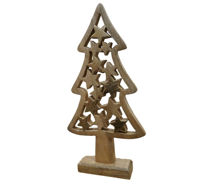 - Choinka drewniana mango płaska z gwiazdkami 40cm