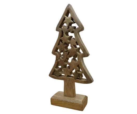 - Choinka drewniana mango płaska z gwiazdkami 30cm