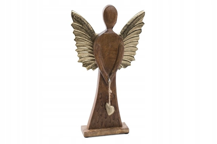 Ciepły odcień drewna i subtelna faktura nadają figurce ponadczasowy charakter. Złote skrzydła odbijają promienie świec i lampek, tworząc przytulny nastrój – idealny na zimowe wieczory, rodzinne spotkania i chwile wyciszenia. To także piękny, serca poruszający pomysł na prezent.