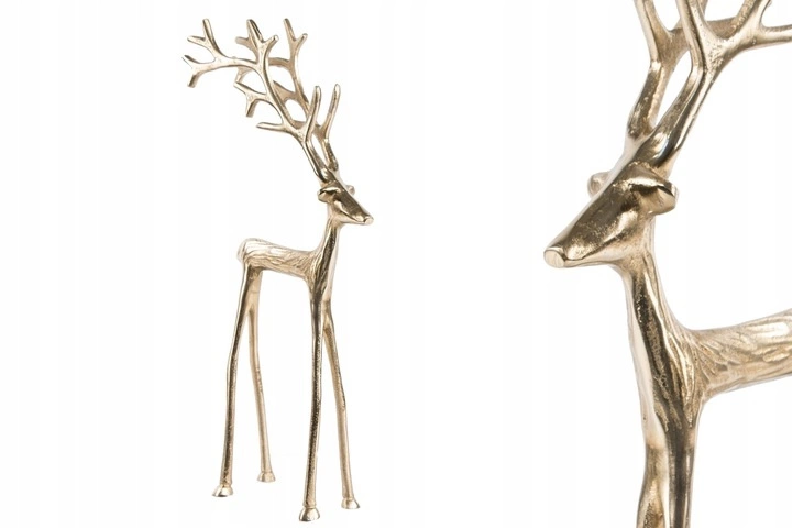 Renifer metalowy złoty chudy 45 cm to ozdoba świąteczna, która łączy minimalizm z elegancją. Smukła sylwetka i ciepłe, satynowe złoto pięknie odbijają światło lampek, tworząc nastrojową poświatę. Ta dekoracja subtelnie podkreśli zimowy klimat, doda klasy aranżacjom w stylu nowoczesnym, skandynawskim lub glamour i sprawi, że dom stanie się jeszcze bardziej przytulny. Idealna na prezent – od razu gotowa, by wprowadzić odrobinę świątecznej magii.