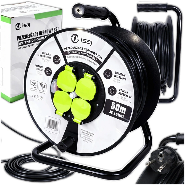- Przedłużacz bębnowy ISAJ BS1 50m 3x2,5mm2 IP44 z klapkami