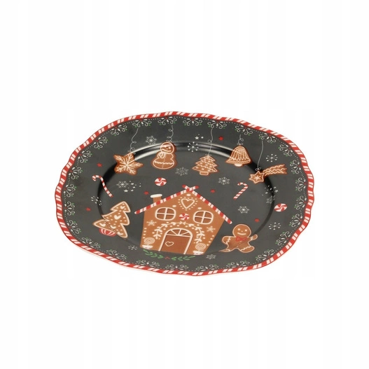 - Kolor czarny z uroczym motywem pierników, który pięknie kontrastuje z wypiekami.