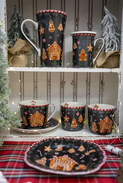 - Czarny kolor i motyw pierników → natychmiastowy, świąteczny nastrój i przytulny klimat.
