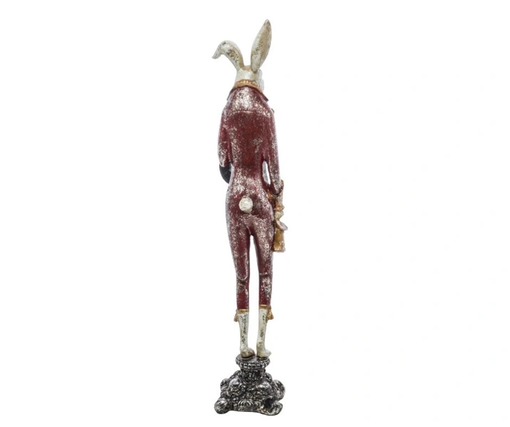 Figurka Antyk KRÓLIK z zegarem czerwono-złoty 54cm to dekoracja, która wygląda, jakby wyszła prosto z eleganckiej, dawnej opowieści. Smukła, wysoka sylwetka króliczka przyciąga wzrok, a misternie zdobiony zegar, który trzyma, nadaje całości niepowtarzalnego charakteru. Połączenie głębokiej czerwieni z połyskującymi, złotymi akcentami sprawia, że figurka pięknie prezentuje się zarówno w klasycznych, jak i nowoczesnych wnętrzach.