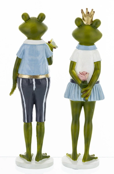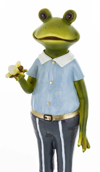 - Figurka Żaba ON/ONA zielona biało-niebieski strój 28cm 2wzory 1 sztuka