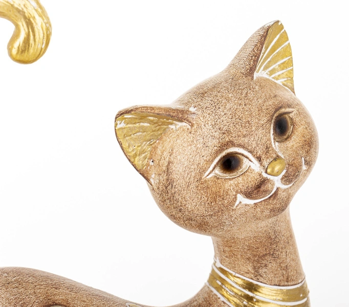 Elegancka figurka kota w brązowo‑złotym odcieniu z błyszczącymi cyrkoniami wprowadzi do wnętrza przytulny blask, podkreślając styl i charakter Twojego domu.