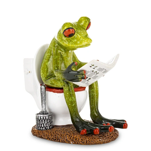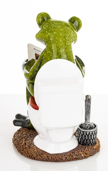 Figurka żaby na kibelku z gazetą to urocza, zabawna dekoracja, która doda lekkości wnętrzu i wywoła uśmiech na twarzy domowników oraz gości.