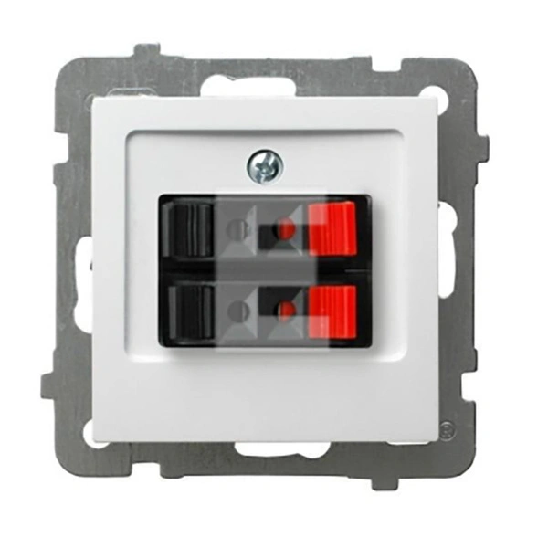 Gniazdo głośnikowe podwójne GG-2G/m/00 Ospel AS w kolorze białym to praktyczne zakończenie instalacji nagłośnienia w domu, biurze lub lokalu usługowym. Umożliwia estetyczne i czytelne podłączenie dwóch par przewodów głośnikowych, zapewniając porządek w okablowaniu oraz pewny styk. Neutralna biała barwa i klasyczny design sprawiają, że gniazdo dobrze komponuje się z większością serii osprzętu i wystrojem wnętrz, jednocześnie oferując solidne, technicznie dopracowane rozwiązanie.