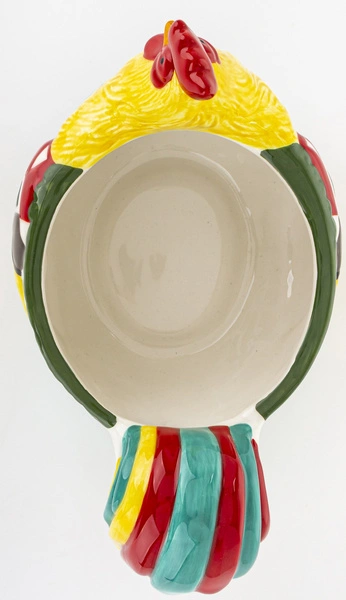 Kura pojemnik żółto-czerwona będzie pięknie wyglądać ustawiona na kuchennym blacie, gdzie może przechowywać słodkości, przyprawy w saszetkach czy małe akcesoria kuchenne. W jadalni sprawdzi się jako oryginalna ozdoba stołu, do której można włożyć cukierki, ciasteczka lub małe świąteczne dekoracje.