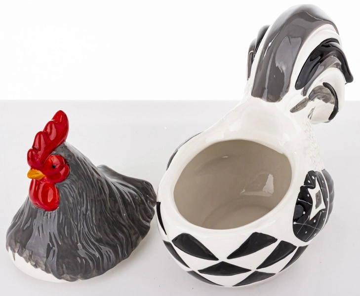 Delikatnie zaokrąglone kształty i wyraźnie zarysowana forma kury sprawiają, że jest nie tylko praktycznym pojemnikiem z pokrywką, ale też pełnoprawną ozdobą stołu, kredensu czy kuchennego blatu. To idealny dodatek, który wprowadza sielski nastrój, świetnie pasuje do dekoracji świątecznych oraz codziennych aranżacji i może stać się ciepłym akcentem w każdej jadalni.