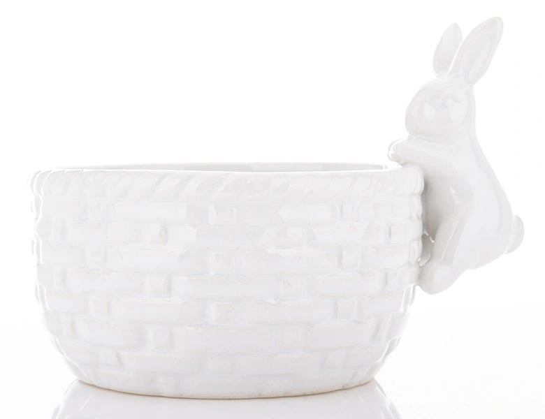 - Miska ceramiczna biała z wchodzącym królikiem 11,5x15,5cm