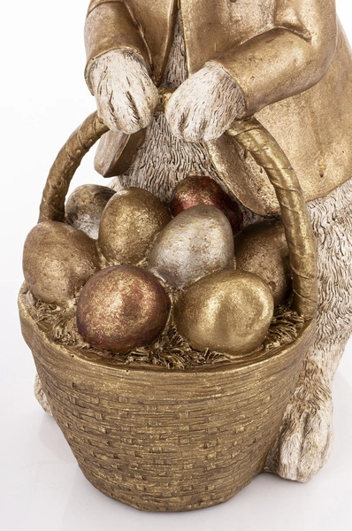 - Figurka Królik ON złota patyna frak z koszykiem jajek 50 cm